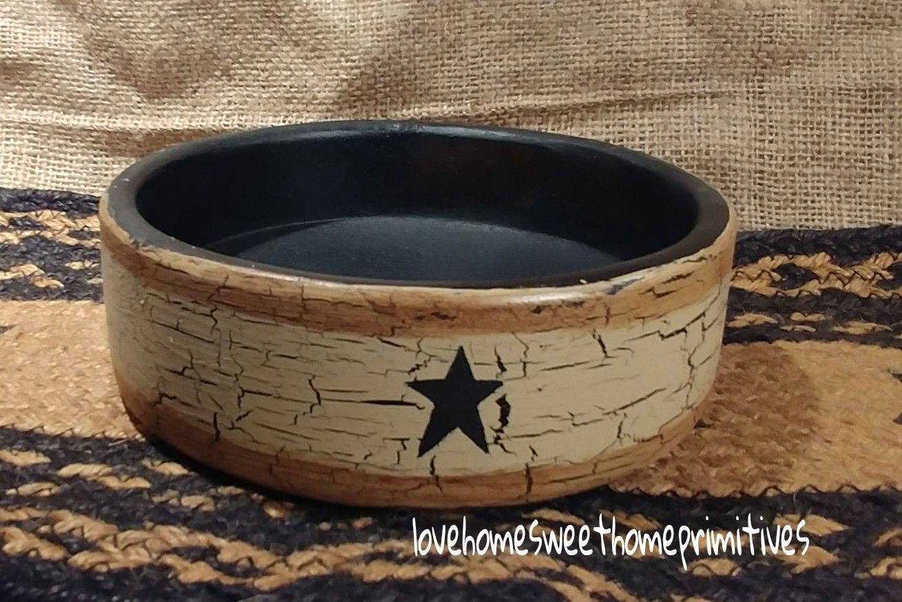 Primitive Crackle Tan & Black Stars Wood Bowl Farmhouse Decor