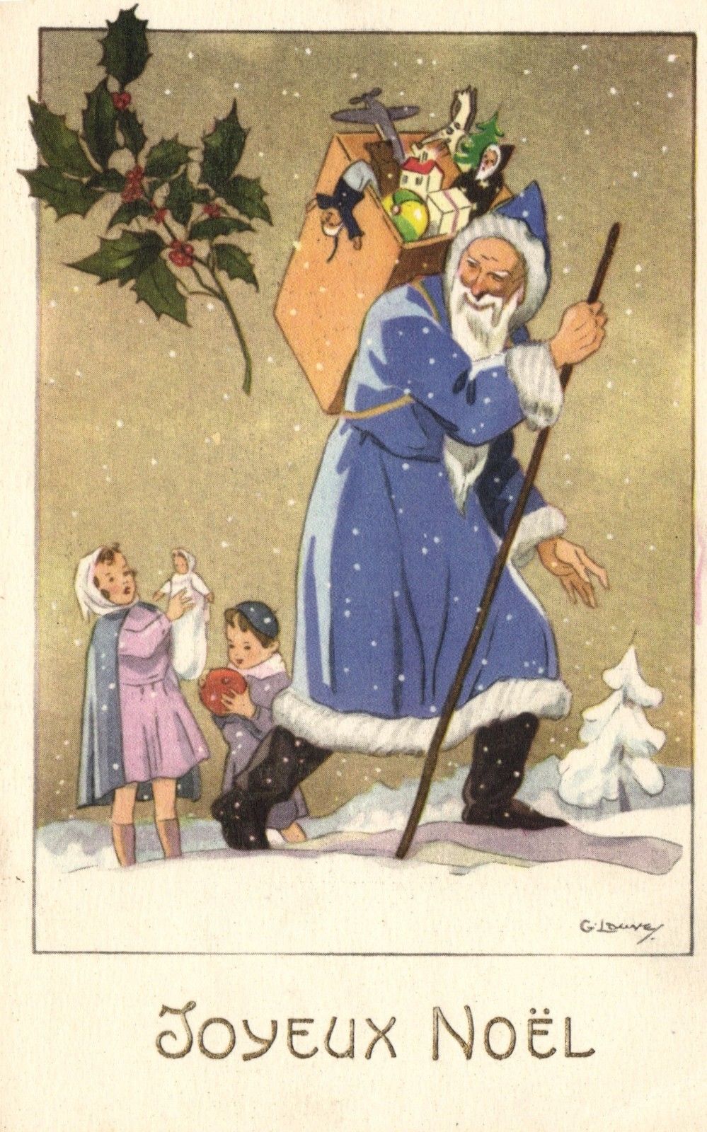 st nicolas St Nicholas SANTA blue robe presents children postcard