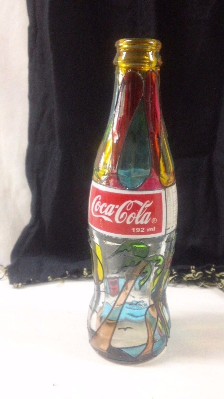 Title (ebay affiliate link): Coca Cola Bottle Stain Glass Designed Antigua Souvenir Palm Tree Bird Art Island