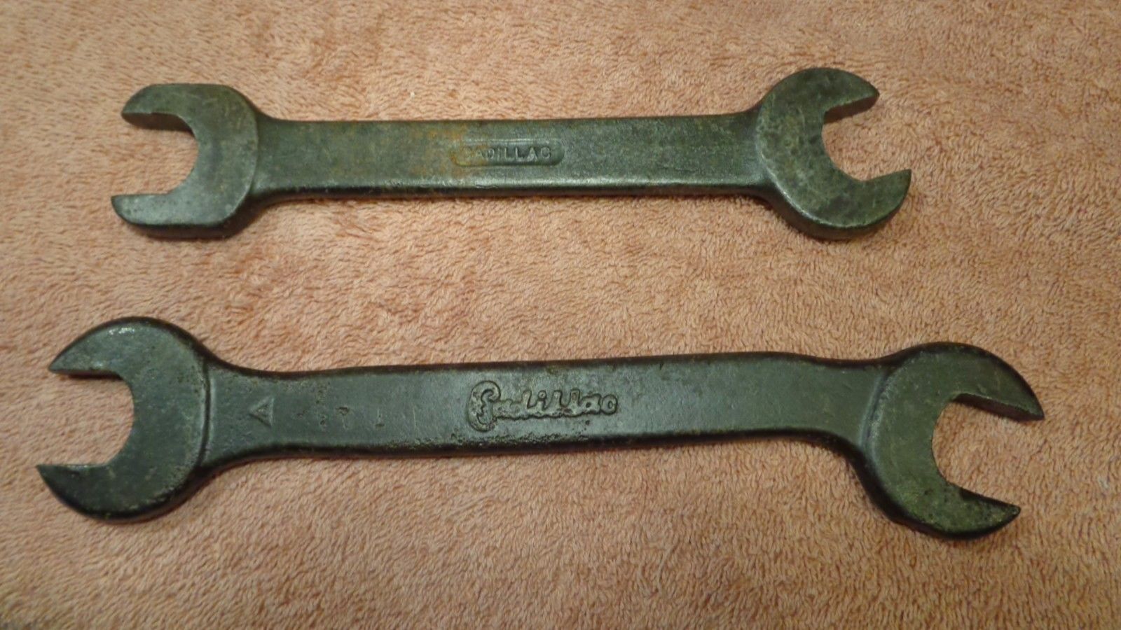 Vintage 2 LOT ORIGINAL CADILLAC AUTOMOBILE OPEN END WRENCHS ~ MARKED CADILLAC