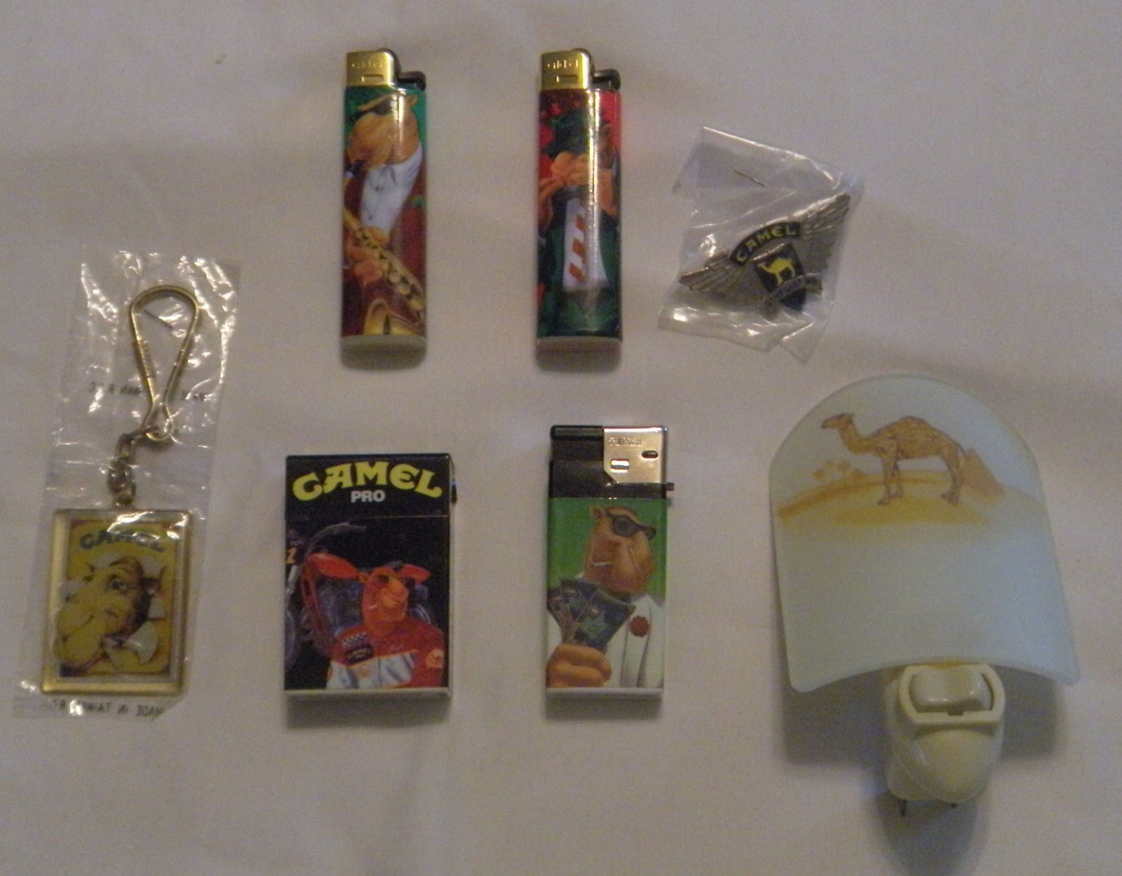 Title (ebay affiliate link): Vintage Joe Camel Floyd Lighter, Keychain Ring, Sturgis Pinback & Night Light