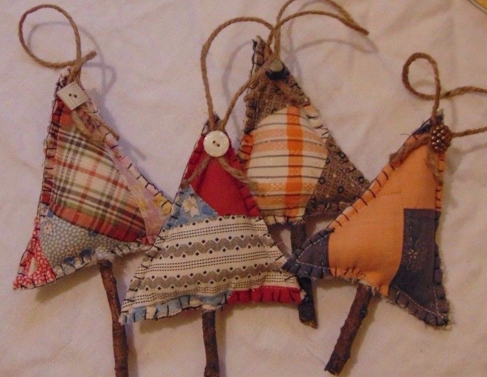 Title (ebay affiliate link): Primitive Antique Quilt Christmas Tree Ornies 4 Pc Set Handmade OOAK