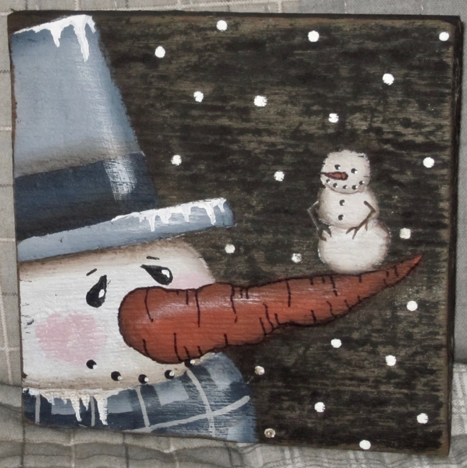 *~*PRIMITIVE*~* HP FOLK ART PRIM SNOWMEN *~* HOLIDAY *~* WINTER *~* BOARD