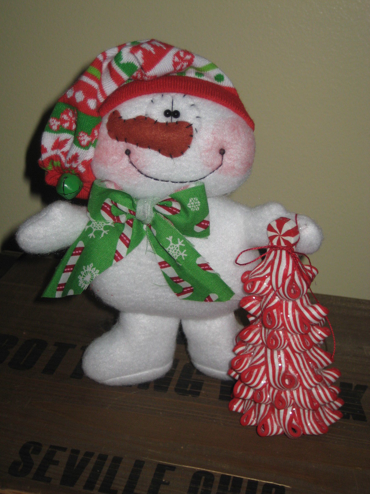 Title (ebay affiliate link): PRIMITIVE HC CHRISTMAS STANDING SNOWMAN DOLL PEPPERMINT TREE SHELF SITTER ORNIE
