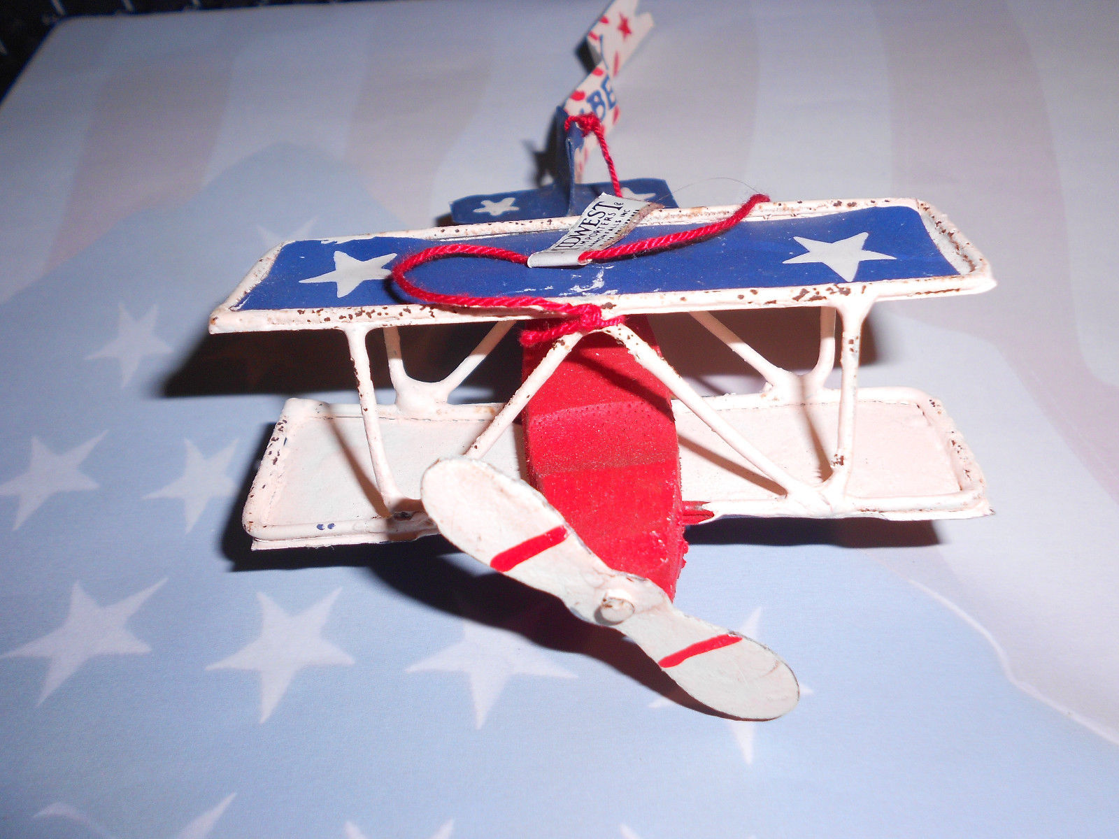 Title (ebay affiliate link): Vintage WWII Wood/METAL Original Replica "LIBERTY" Bi-Plane Toy Primitive