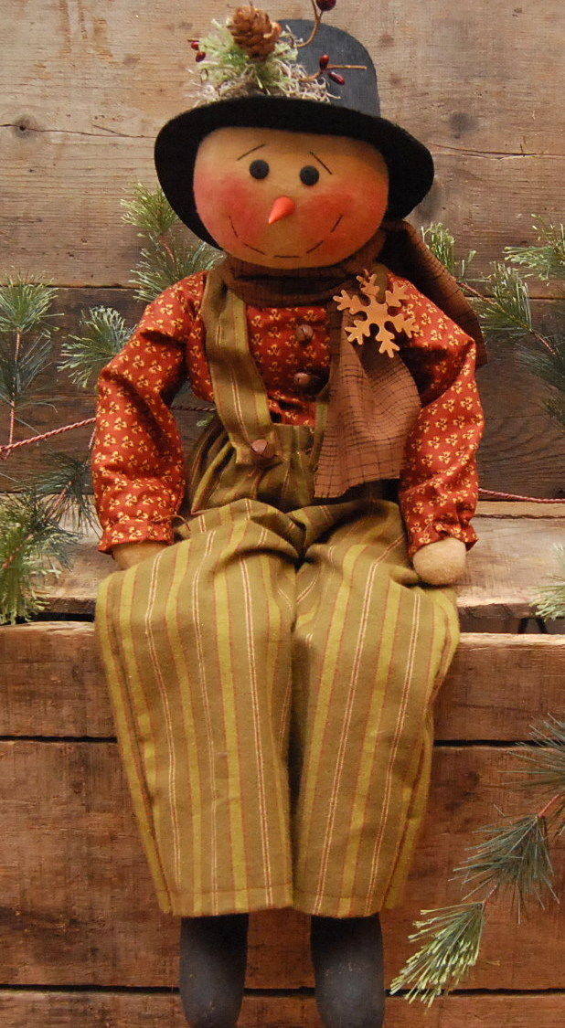 HANDMADE PRIMITIVE SNOWMAN DOLL WINTER