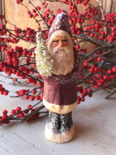 Title (ebay affiliate link): Primitive German Belsnickle~ Folk Art 5 1/2" chalkware Santa w/feather tree