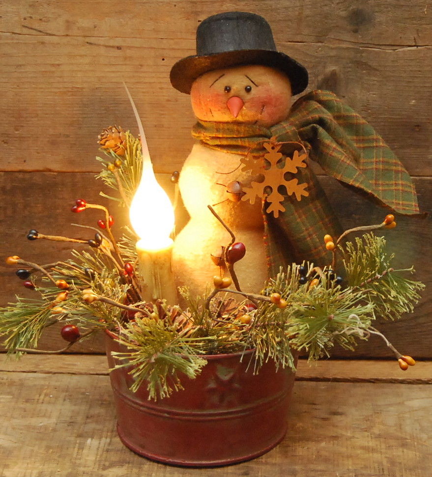 Title (ebay affiliate link): HANDMADE PRIMITIVE SNOWMAN DOLL Electric Star Tub CANDLE LAMP