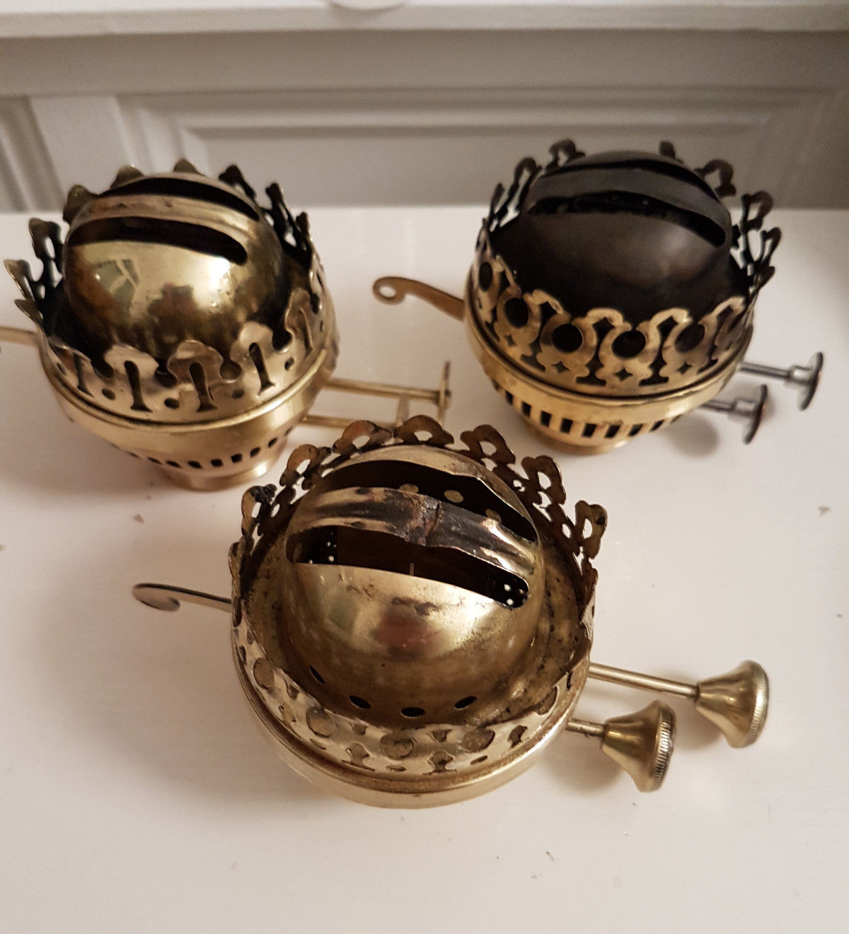 3 x OIL LAMP BURNERS IN BRASS