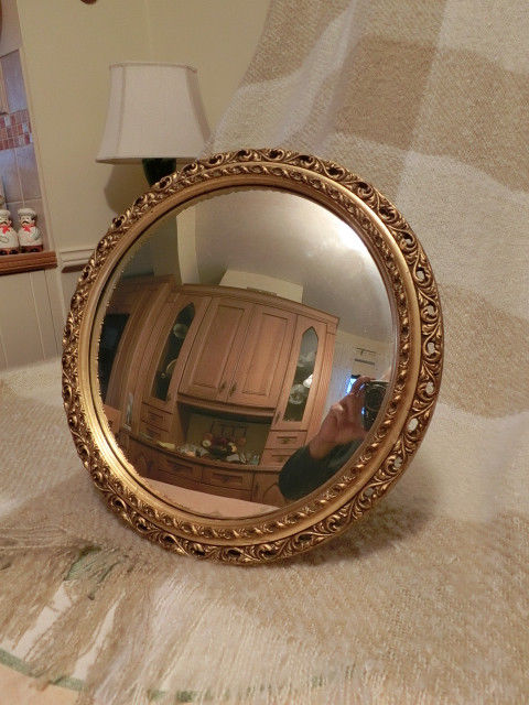 OLD FRENCH CONVEX MIRROR WITH GOLD WOOD FRAME