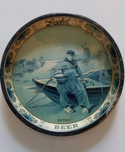 Title (ebay affiliate link): Two collectable tip trays, 4 1/4" diameter, blue color, Goebel Beer, Detroit.