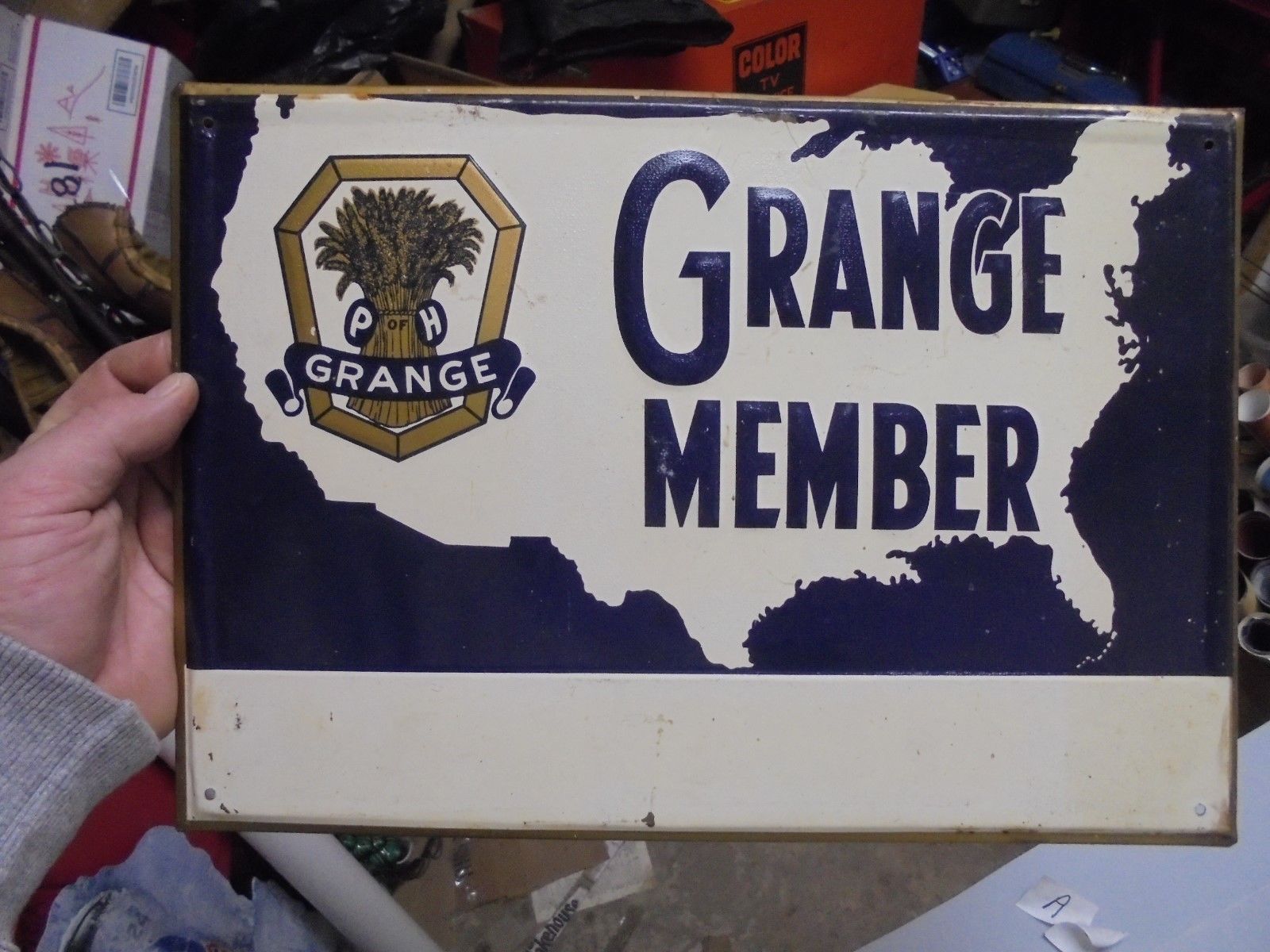 Vintage Grange Member Metal Tin Sign 1940s 1950s Agriculture Farm sign