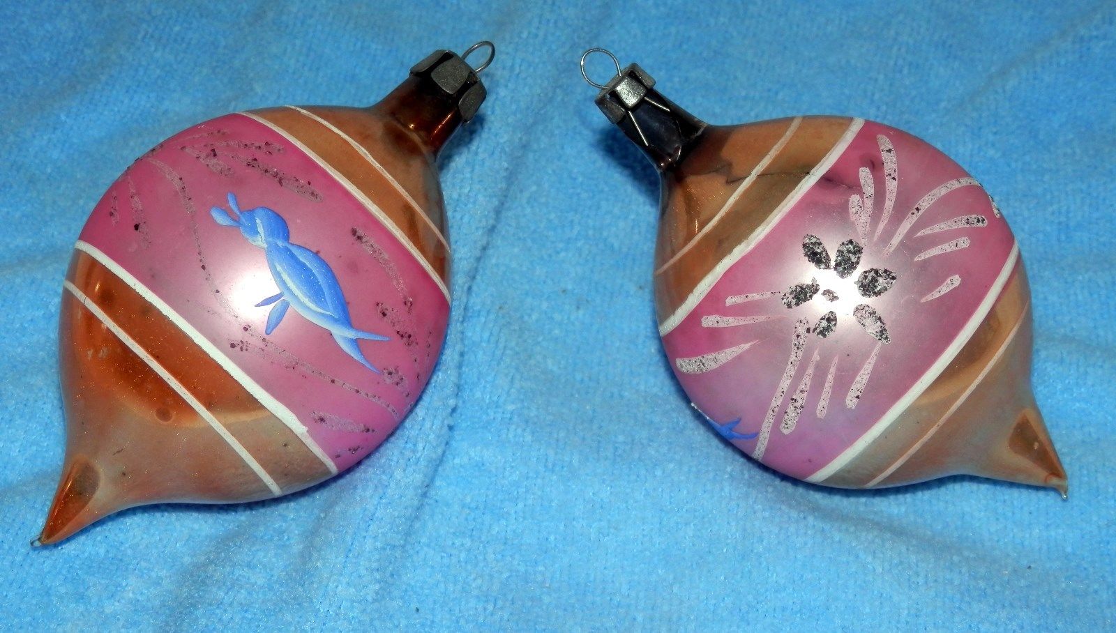 Title (ebay affiliate link): Vintage Pair of Very Early Pink Glass Teardrop Christmas Ornaments from Poland