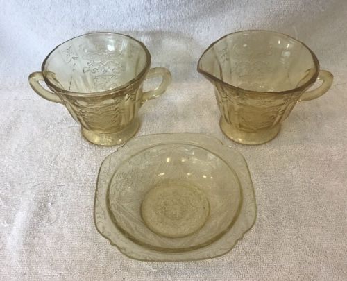 Title (ebay affiliate link): Vintage Lot Of Madrid Yellow Depression Glass Sugar Bowl Creamer & Dish