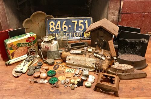 Title (ebay affiliate link): Antique Vintage Junk Drawer Lot License Plate Hardware Coca Cola Levi Strauss