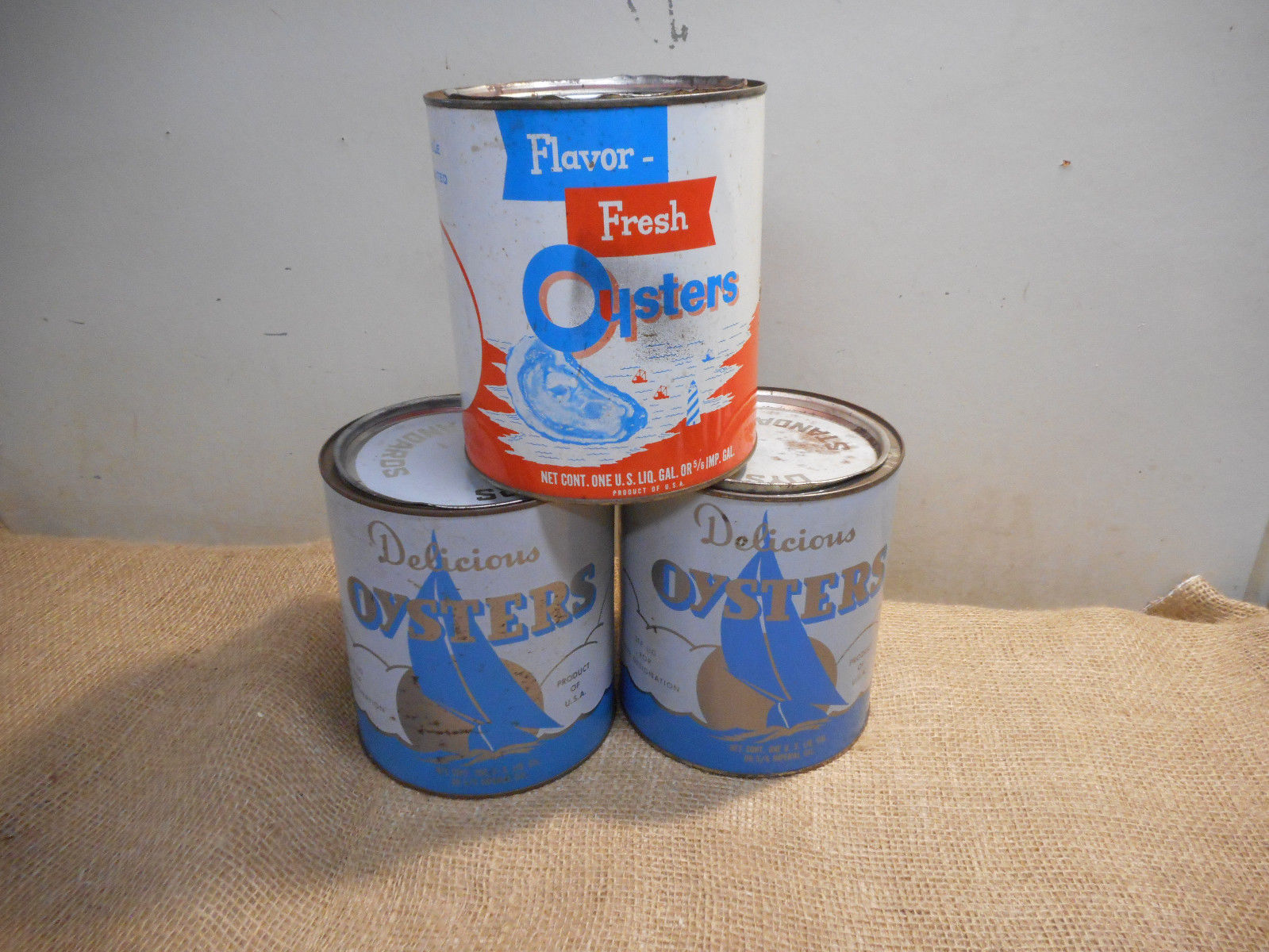 Title (ebay affiliate link): L2371- 3 Vintage Oyster Cans - Delicious Oysters, Flavor-Fresh Oysters