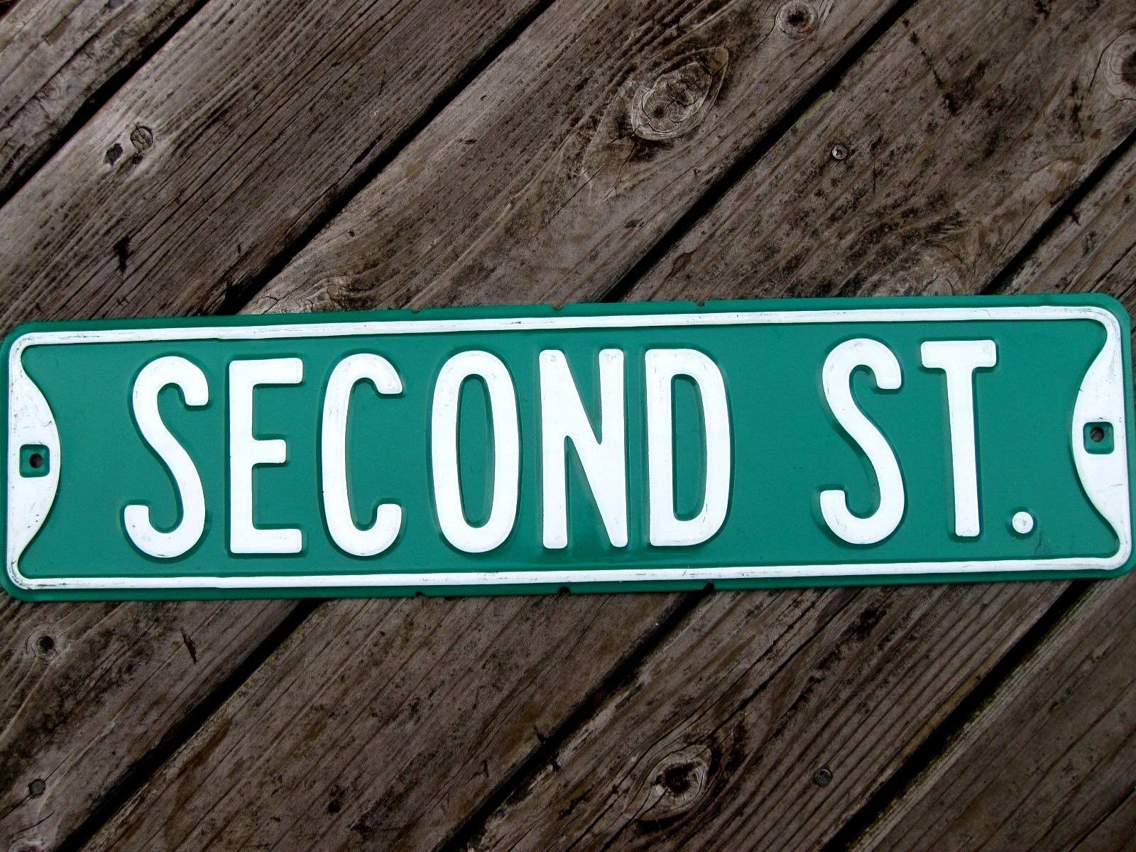 Vtg Original Second Street Embossed Metal Sign-30x6-NOS