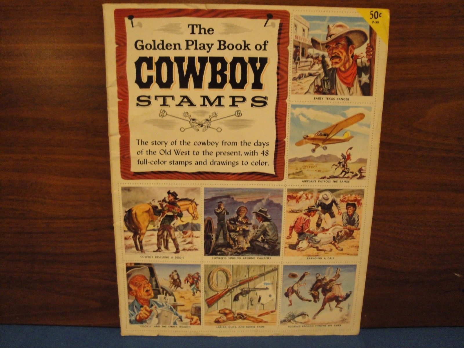Title (ebay affiliate link): Vintage, "The Golden Play Book of Cowboy Stamps", 1955