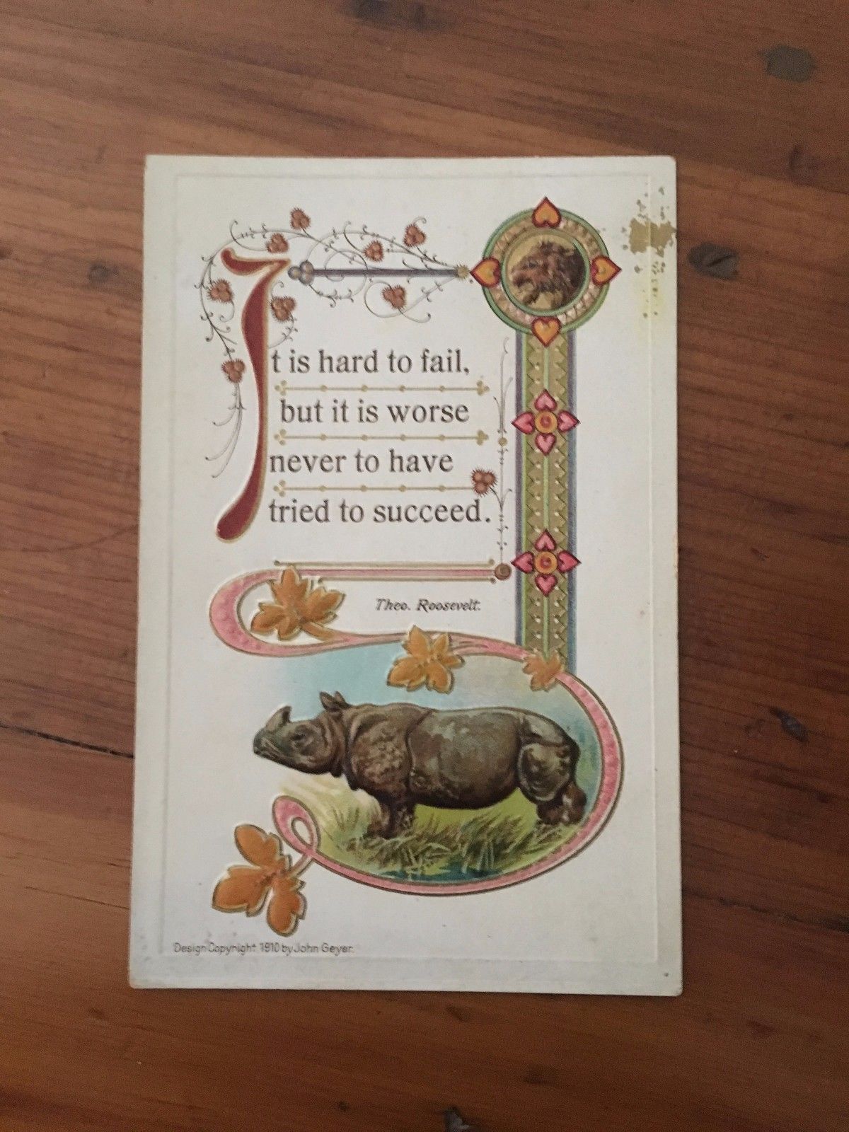 Title (ebay affiliate link): Vintage 1910 Postcard Theodore Roosevelt Quote Embossed - Rhino