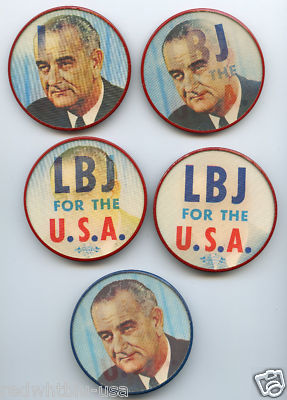 5 LBJ Campaign Flasher Buttons VARI VUE