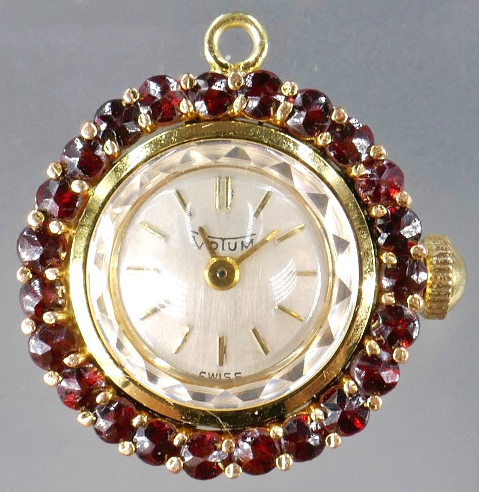 Fine Antique Art Deco Swiss 14k Gold Ruby Jeweled Ladies Necklace Pendant Watch
