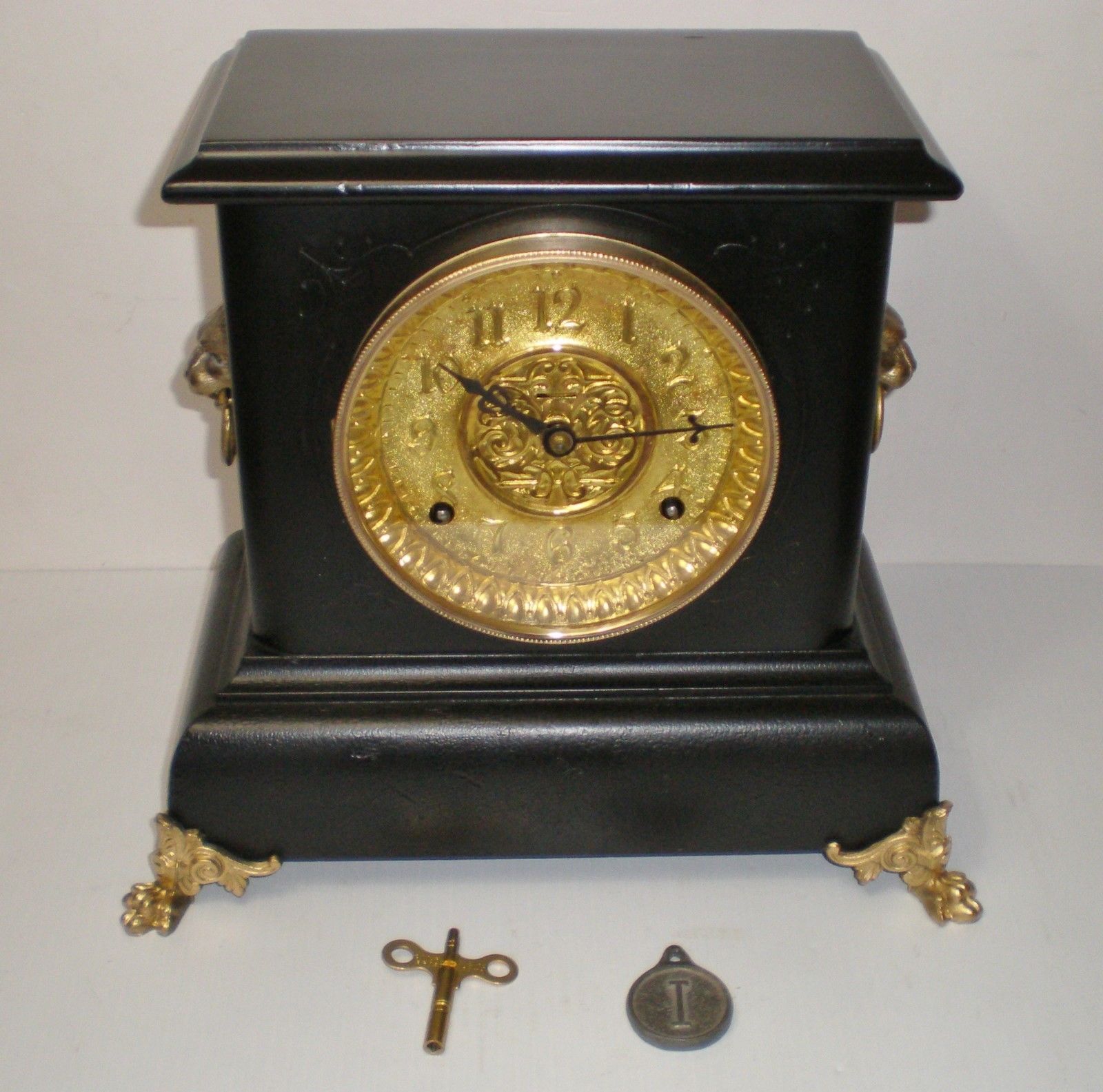 Title (ebay affiliate link): ANTIQUE INGRAHAM MANTLE CLOCK, EBONIZED, SOLID BRASS DIAL ORIGINAL PARTS & CLEAN