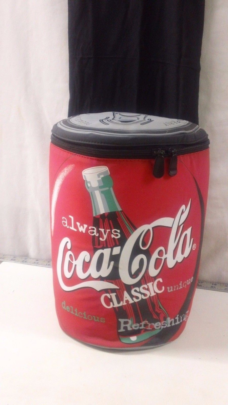 Title (ebay affiliate link): Vtg Coca Cola Soft Cooler Round Zipper Strap Tote Bag Official Soda Bottle Red