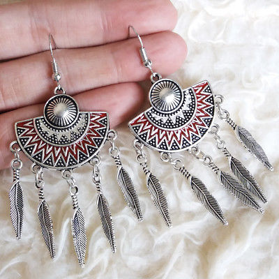Title (ebay affiliate link): Womens FASHION Antique Painted Plate Metal Leaves Dangle Hook Earrings #801459