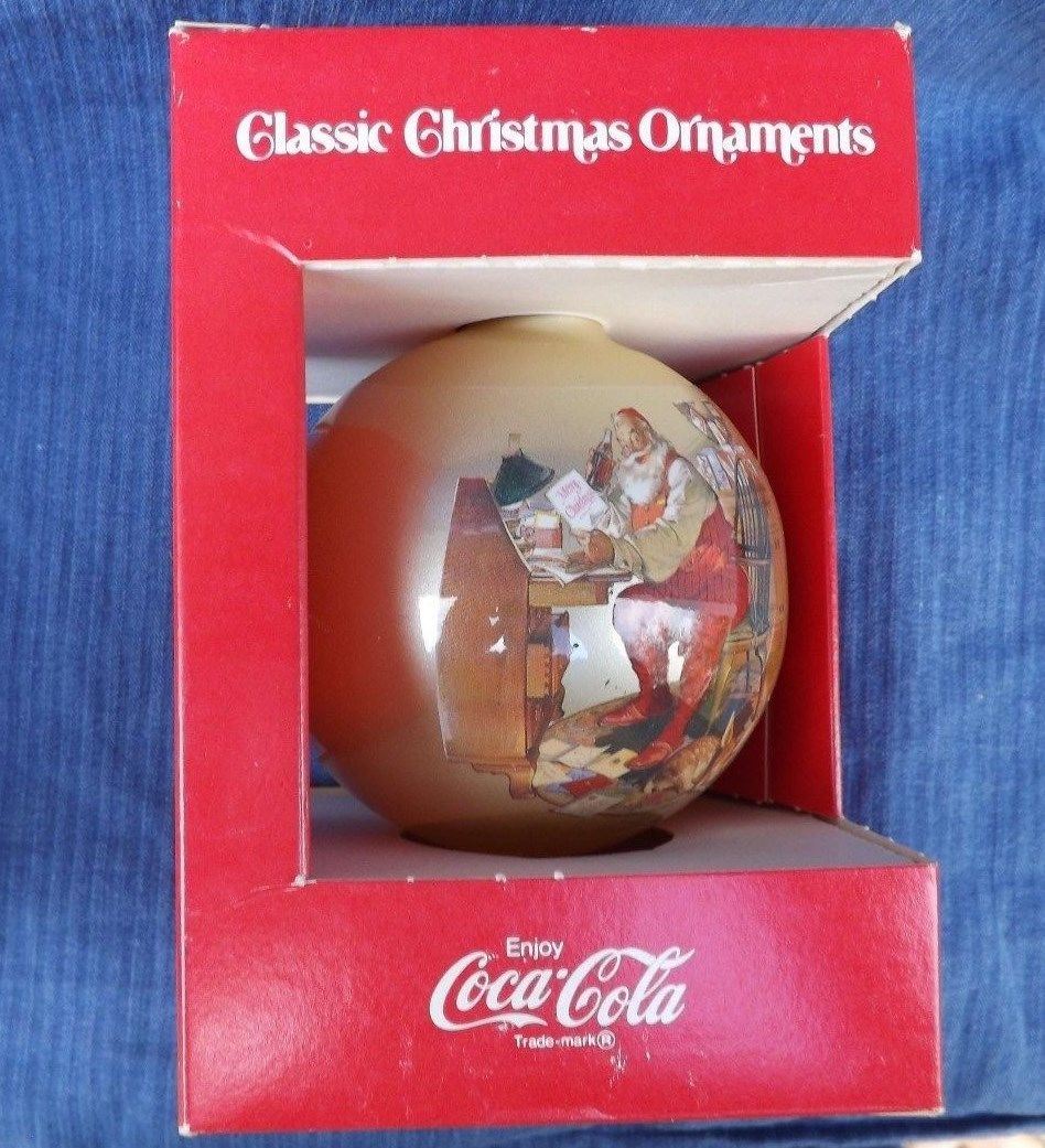 Title (ebay affiliate link): Coke Coca Cola Glass Ornament 1966 Santa Reading X-mas List Vintage 51 Years Old