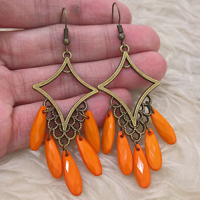 Title (ebay affiliate link): Fashion Womens Bohemians Antique-Tone Rhombus Orange Beads Dangle Hook Earrings