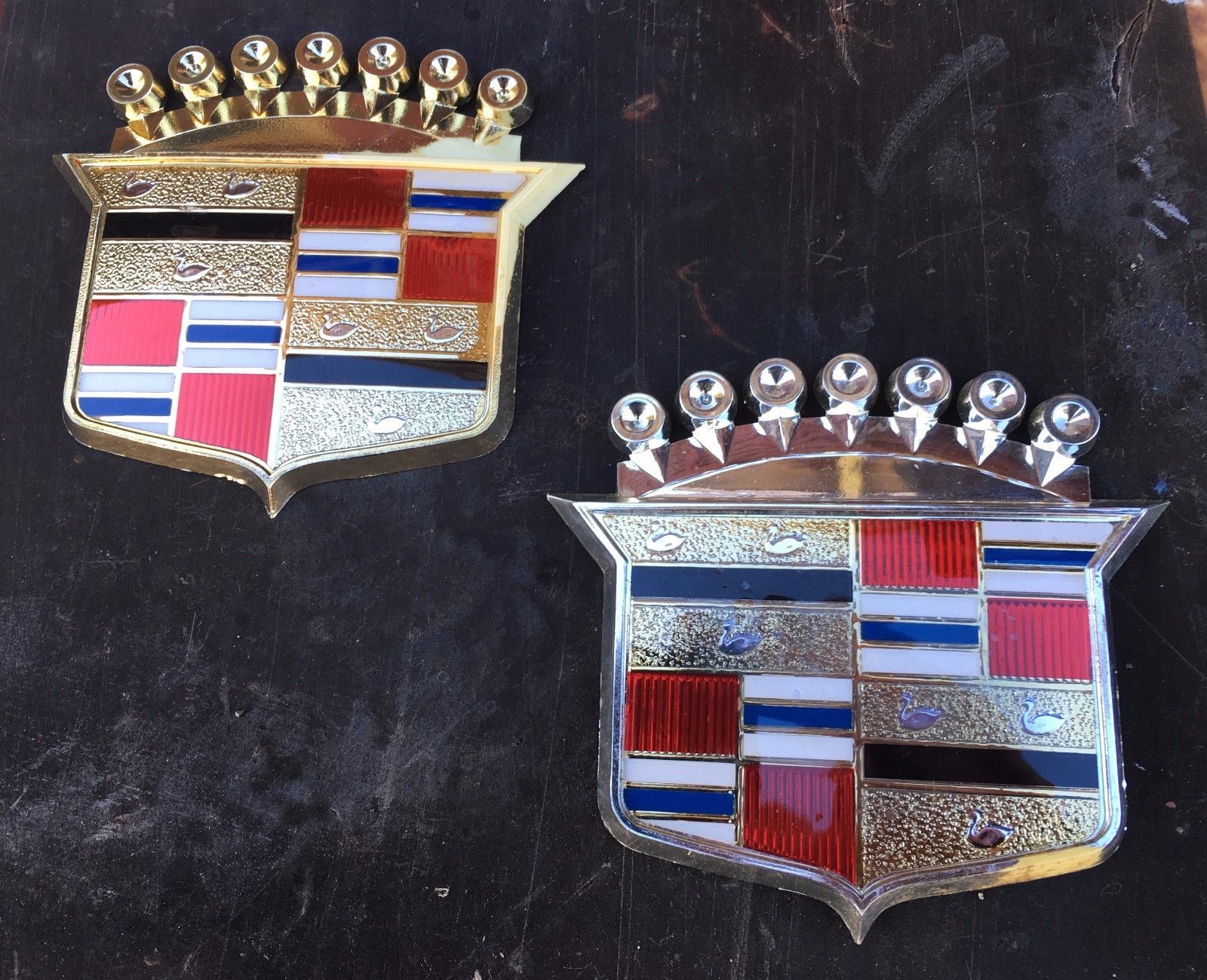 Title (ebay affiliate link): TWO Cadillac Crests vintage dealer advertising Small 3 3/4" DAMAGED