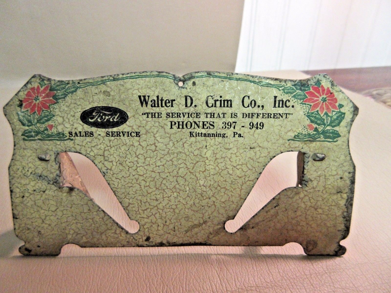 Vintage Ford Advertising-Tin Calendar Holder-Crim Co. Kittanning PA-Auto Car