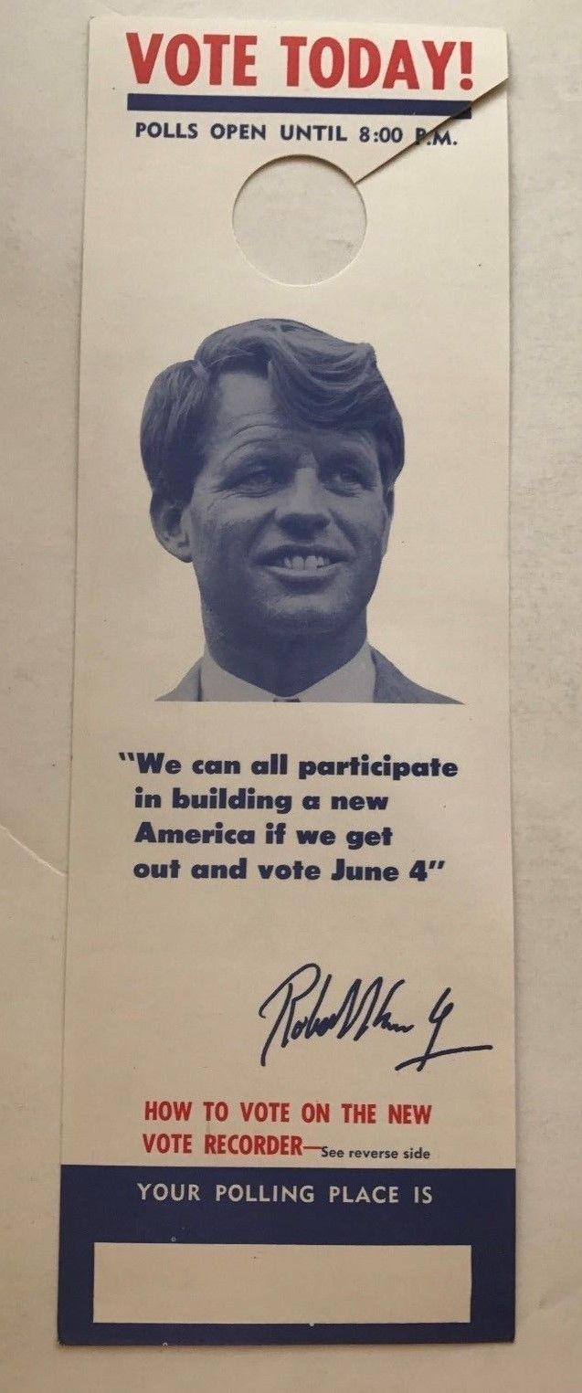 Title (ebay affiliate link): Robert F Kennedy 1968 Get Out To Vote Door Hanger