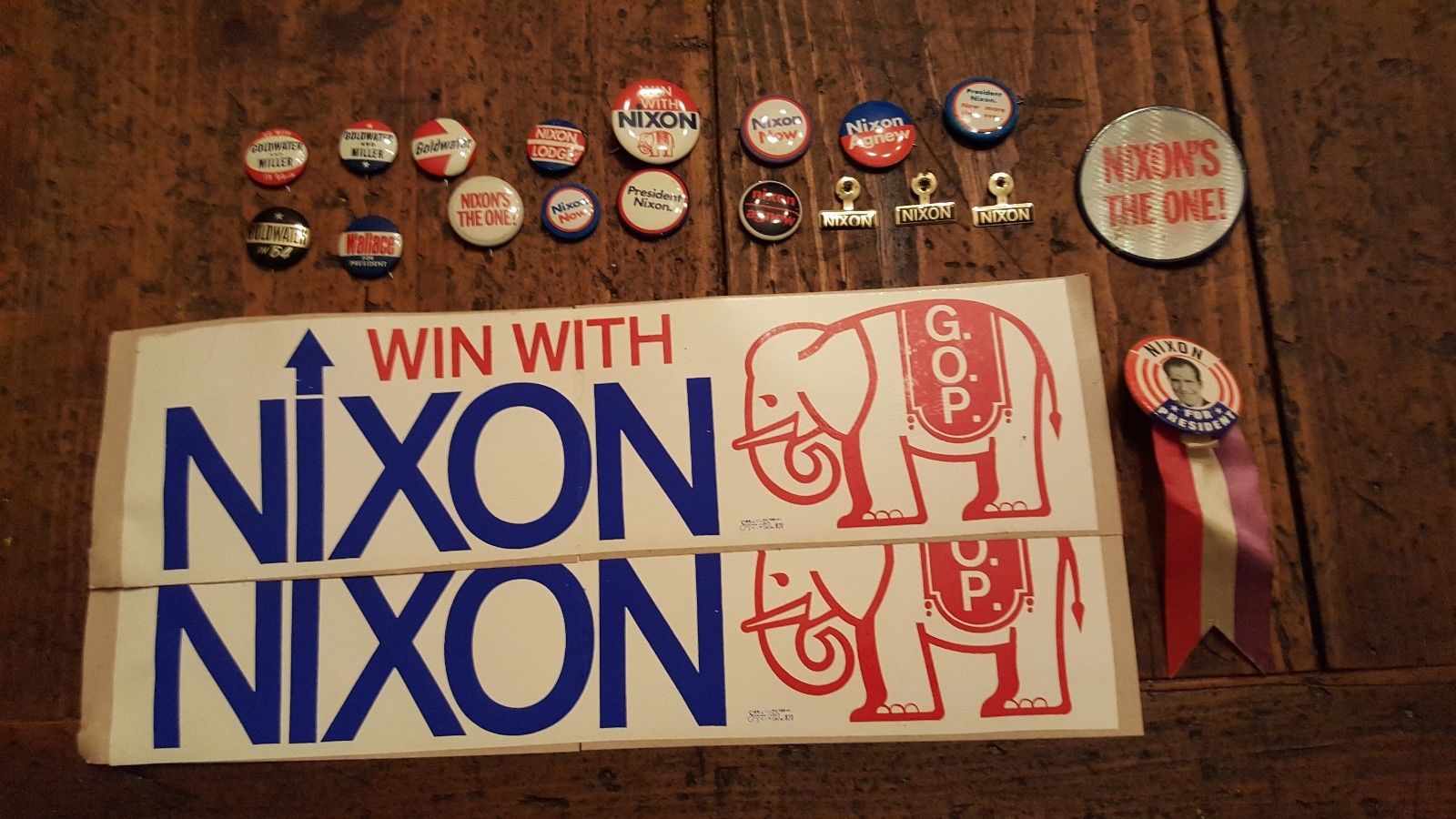 Lot of Nixon Goldwater Political Campaign Buttons and Bumper Stickers trump