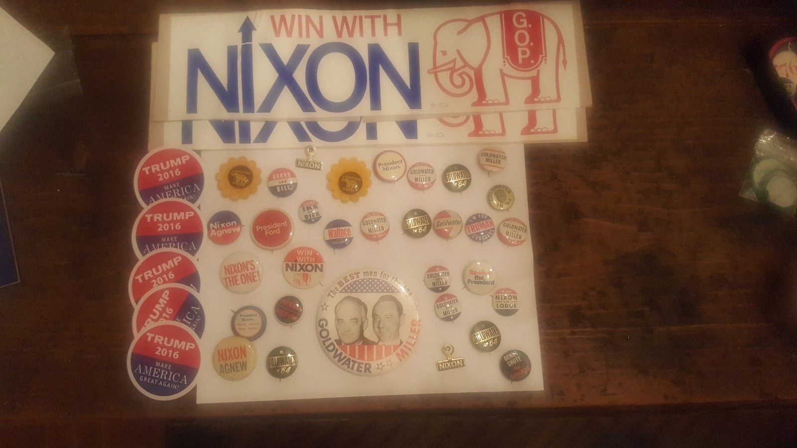 Title (ebay affiliate link): Lot of Nixon, Goldwater, Landon, Wallace, and Trump Political Campaign Buttons