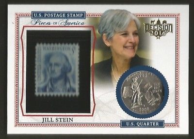 Title (ebay affiliate link): DECISION 2016 Political Card JILL STEIN Pieces of America MA Quarter & US Stamp