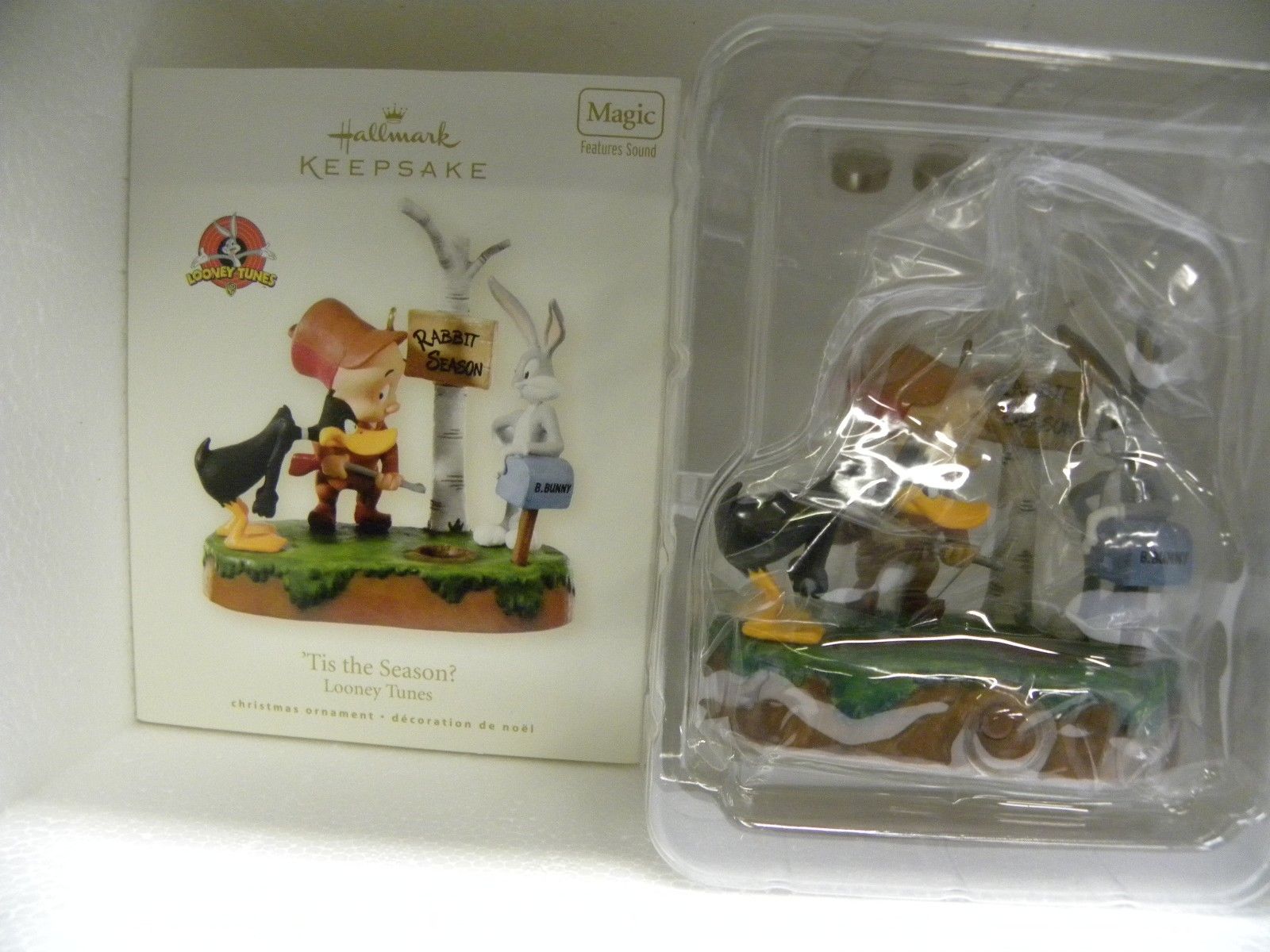 Title (ebay affiliate link): 2008 Hallmark Keepsake Ornament Tis the Season Daffy Duck Bugs Bunny Elmer Fudd