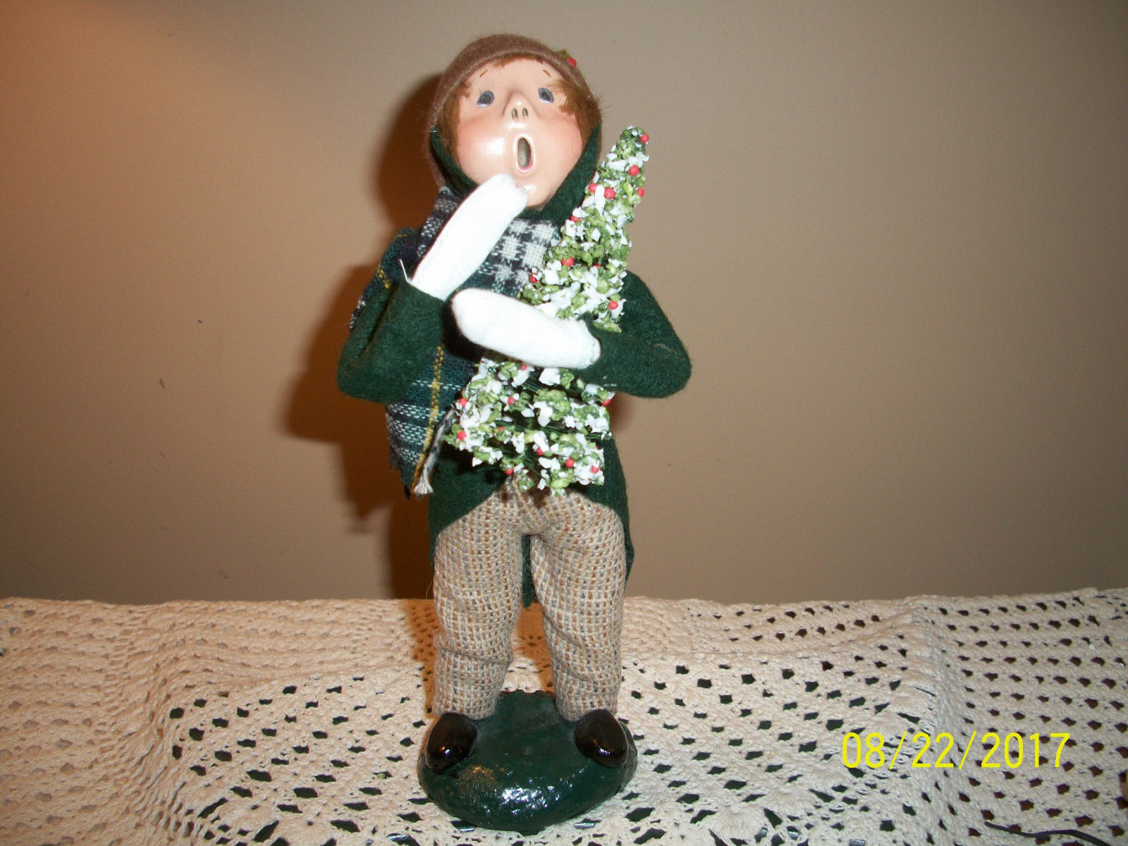 Title (ebay affiliate link): 1984 Early Byers Choice Boy Caroler Signed Byers 84 Cookie bottom Bumpy Bottom