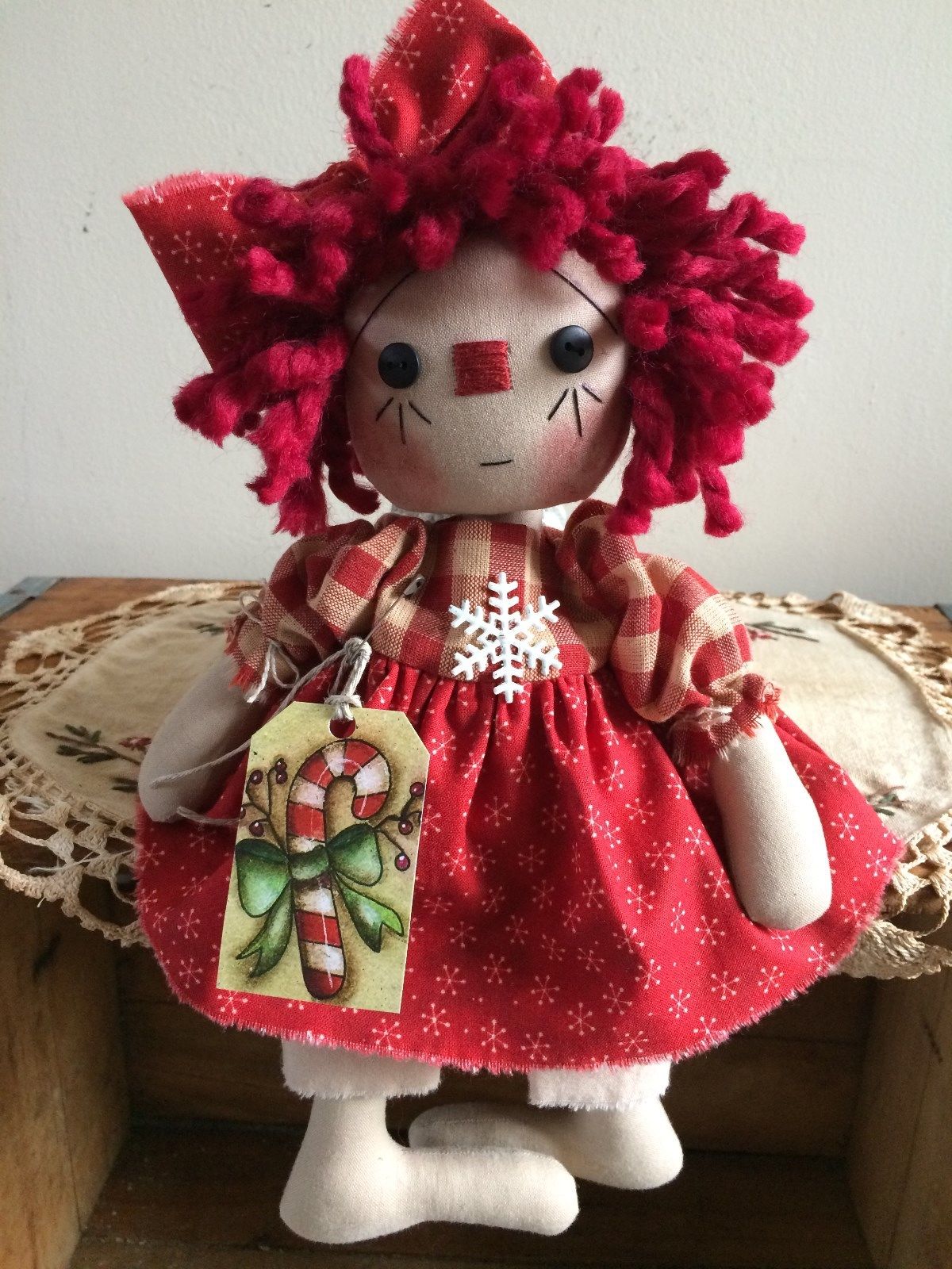 Primitive Raggedy Ann Candy Cane Snowflake Annie