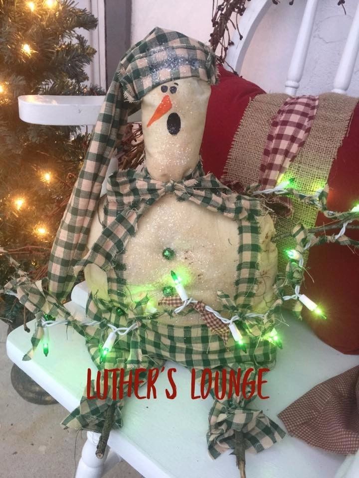 Title (ebay affiliate link): PRIMITIVE SNOWMAN DOLL, LIGHTS INCLUDED, SNOWMAN DOLL, HANDMADE CHRISTMAS DECOR