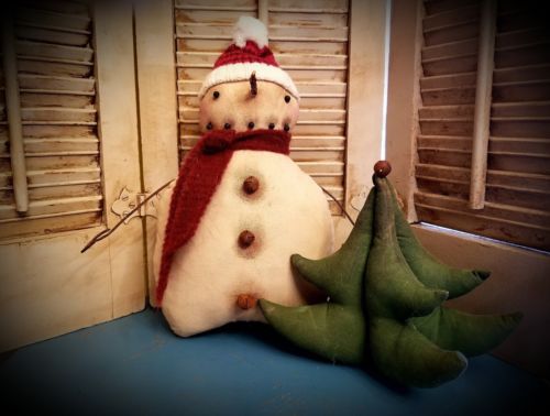 Title (ebay affiliate link): Primitive Snowman Doll w/ Christmas Tree ~Winter ~