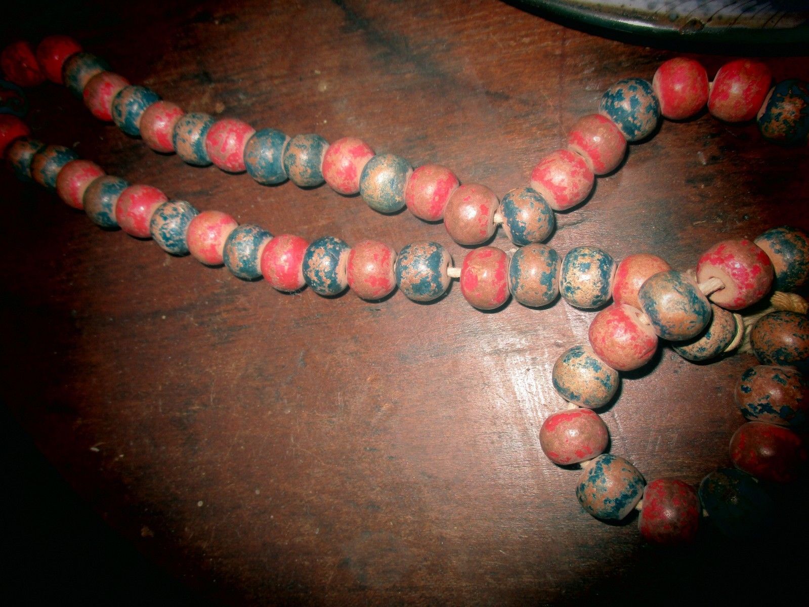 Antique Vintage Wooden Beads Red Blue Paint Primitive Feather Tree AAFA Ornament