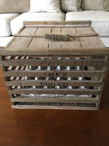 Title (ebay affiliate link): Vintage Hen Egg Carrier Wood Crate W/ Handle holds 90 eggs Farm "HEN EGG CO"