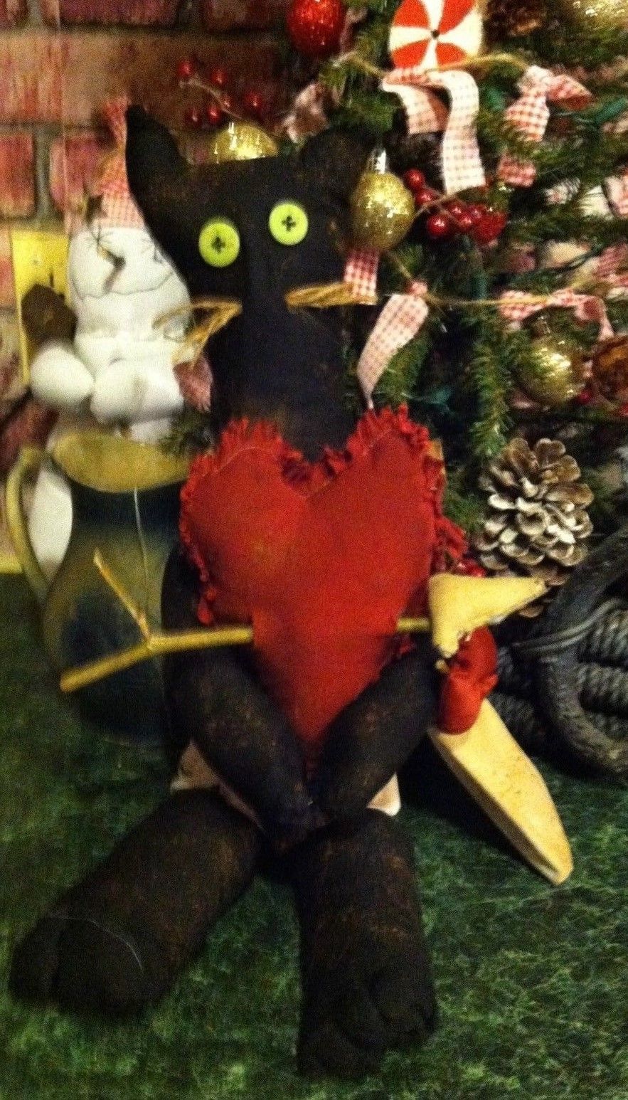 Title (ebay affiliate link): PRIMITIVE VALENTINES DAY CUPID BLACK CAT DOLL ORNIE DECOR