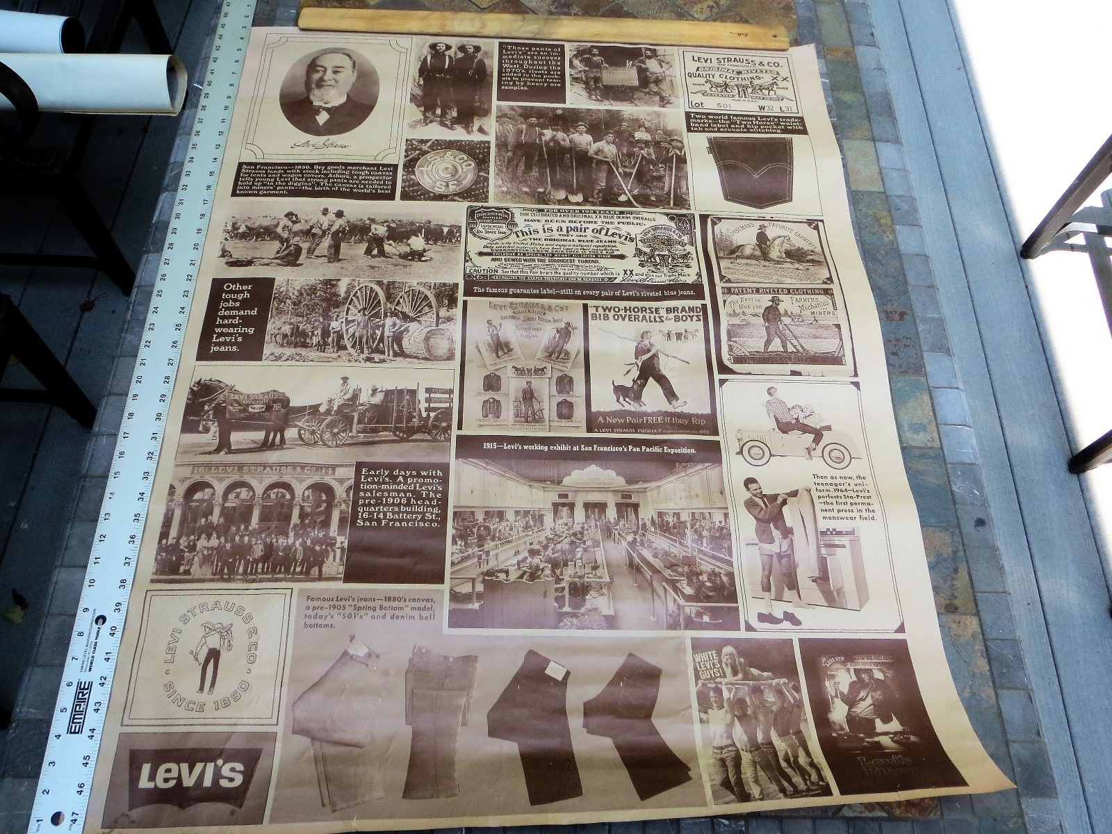 Vintage Rare Large Levi Jeans Poster; History