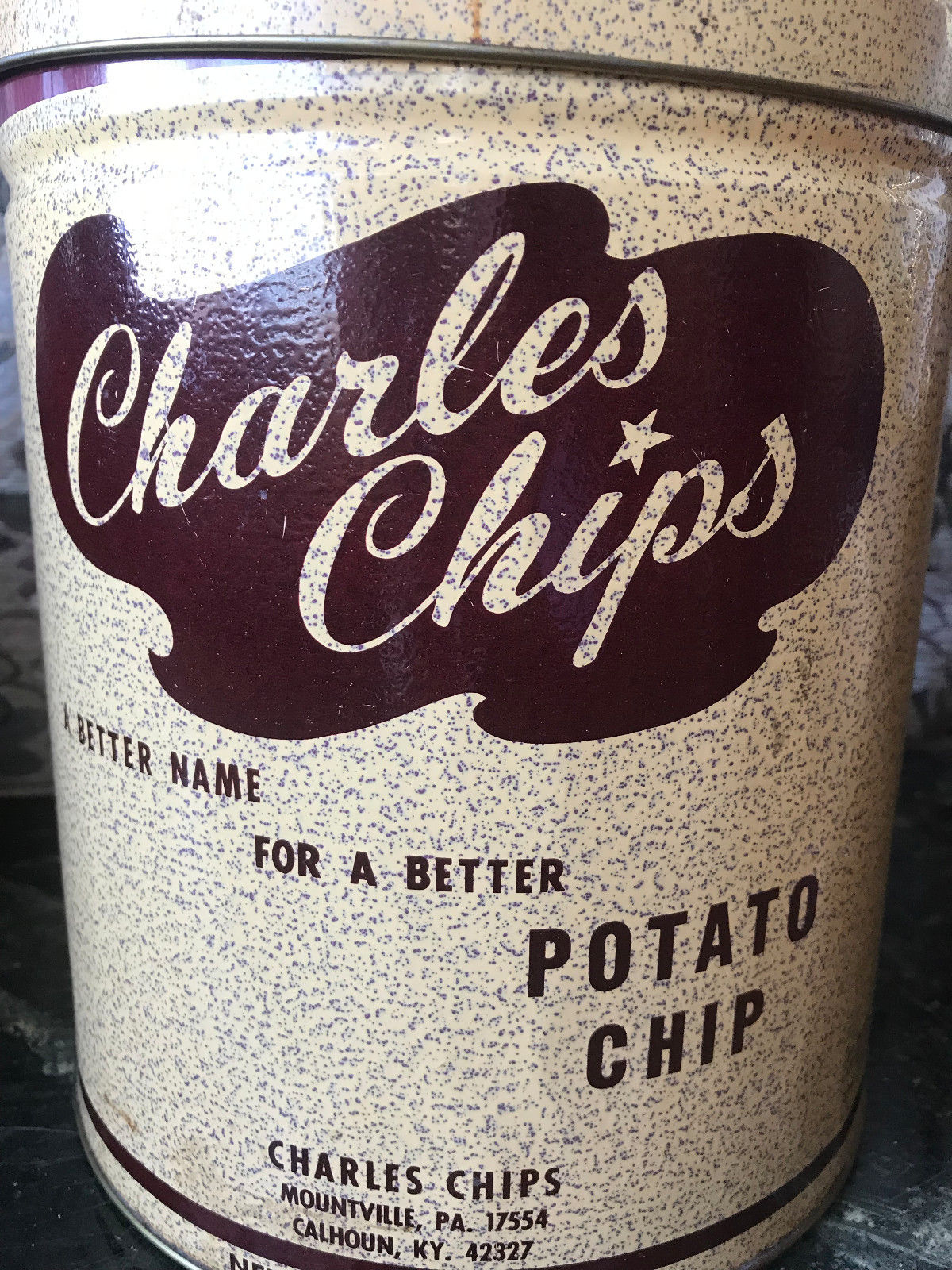 Vintage CHARLES CHIPS Tin~16 Oz. Potato Chip Can