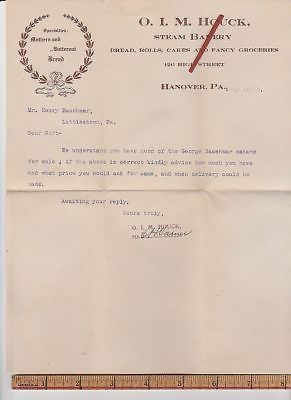 STEAM BAKERY LETTERHEAD O I M HOUCK RARE HANOVER PA TO BASEHOAR LITTLESTOWN 6oP3