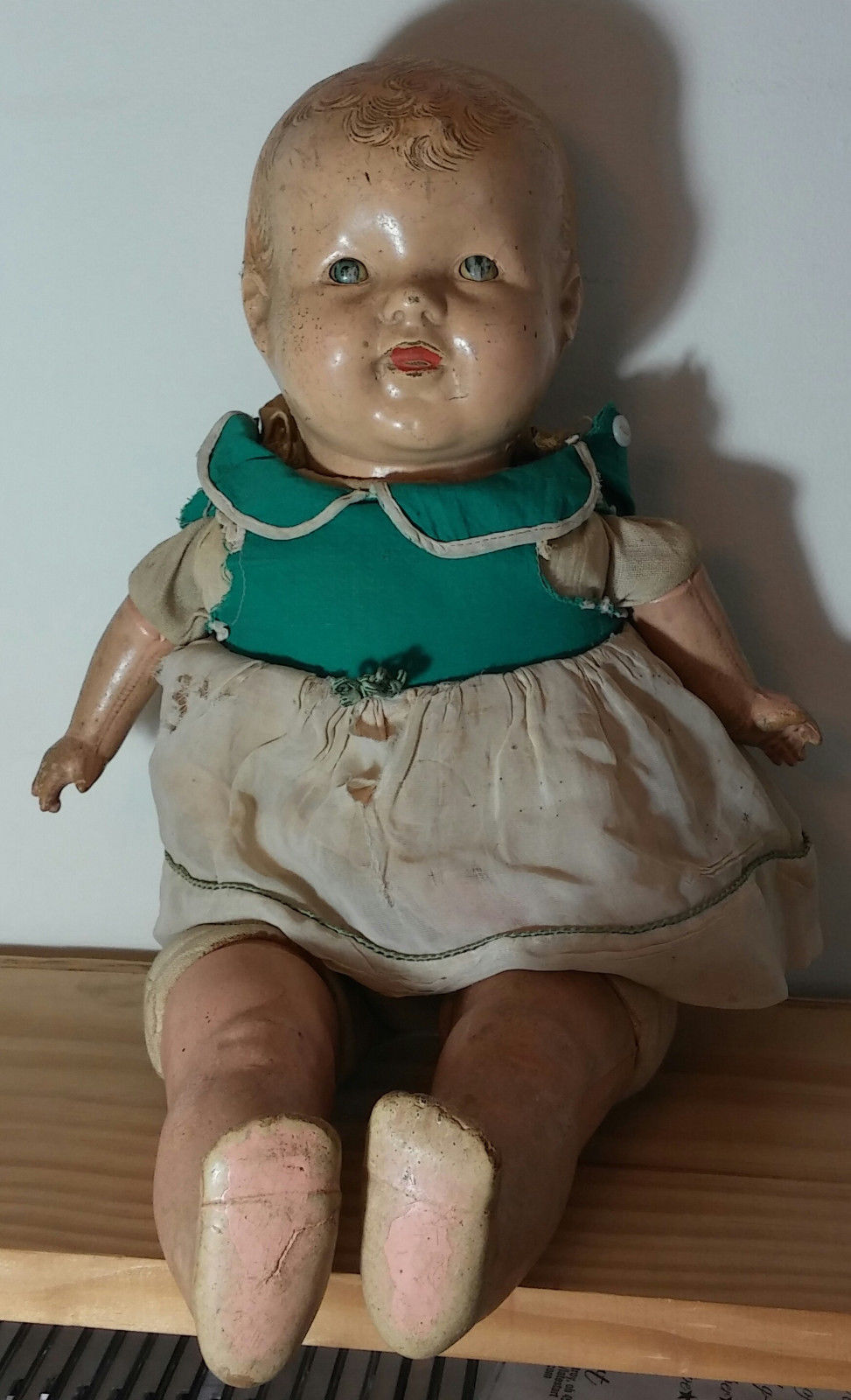 Title (ebay affiliate link): Antique Vintage 20" Inch Doll No Maker Creepy With Dress and Blinks