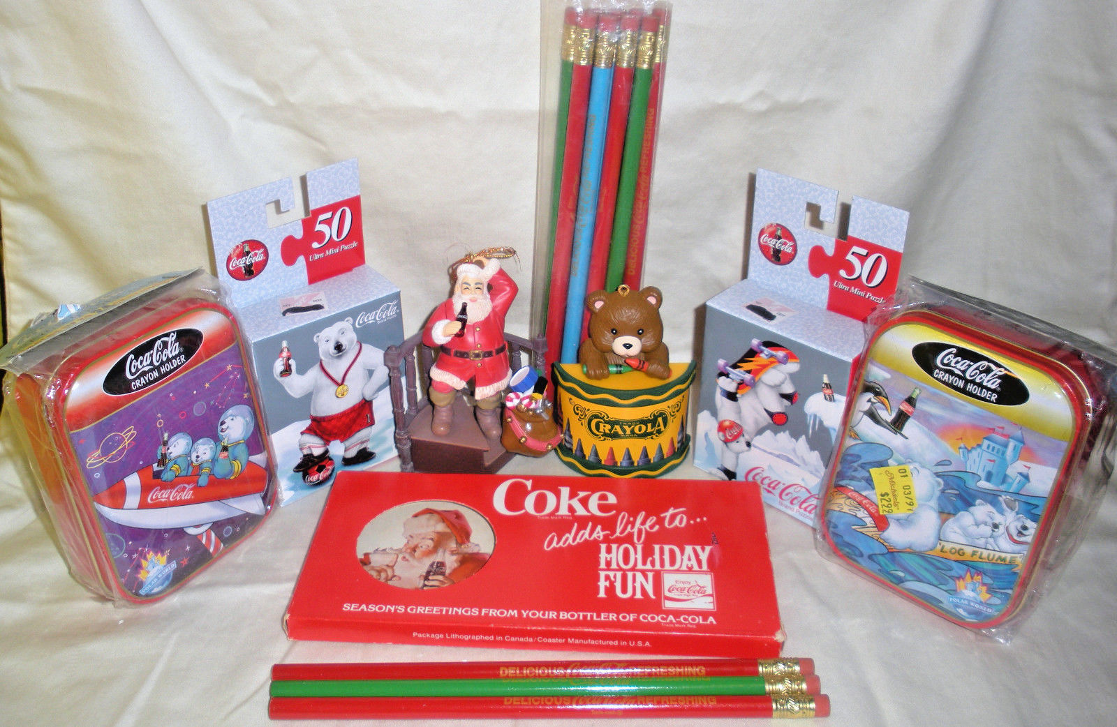 Title (ebay affiliate link): Estate Mixed LOT of COCA-COLA ~ Ornaments ~ Coasters ~ Pencils ~ Puzzles ~ Tins