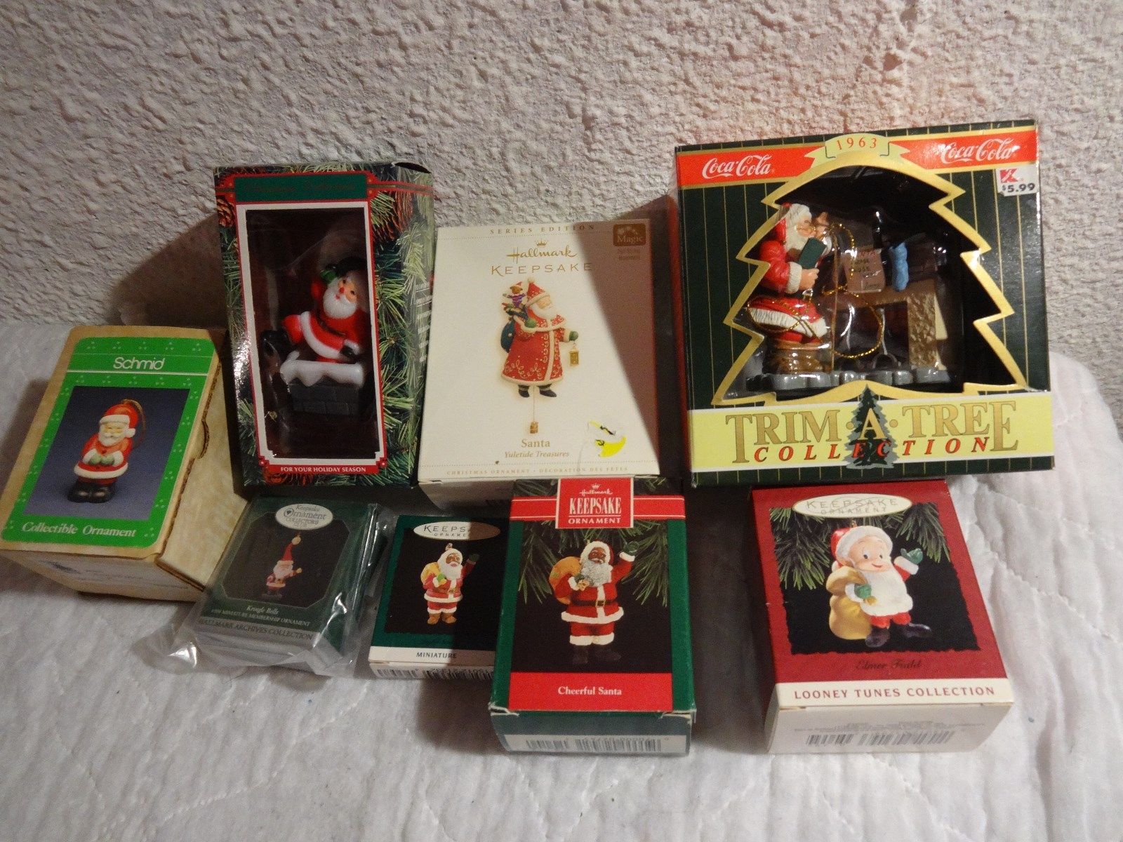Title (ebay affiliate link): Santa Christmas Ornament Lot of 8: Hallmark, Schmid, Coca Cola MIB